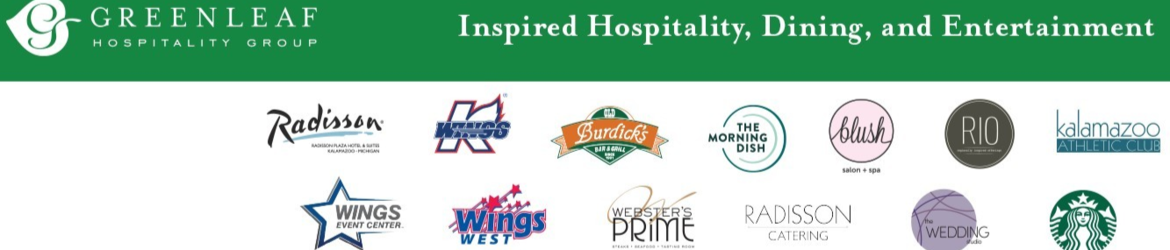 Greenleaf Hospitality Group is privately owned and consist of 3 local properties, Radisson Plaza Hotel & Suites - Downtown Kalamazoo, Wings Event Center and Wings West.